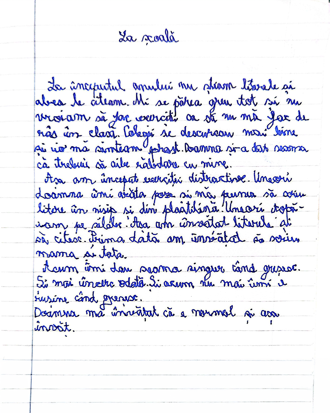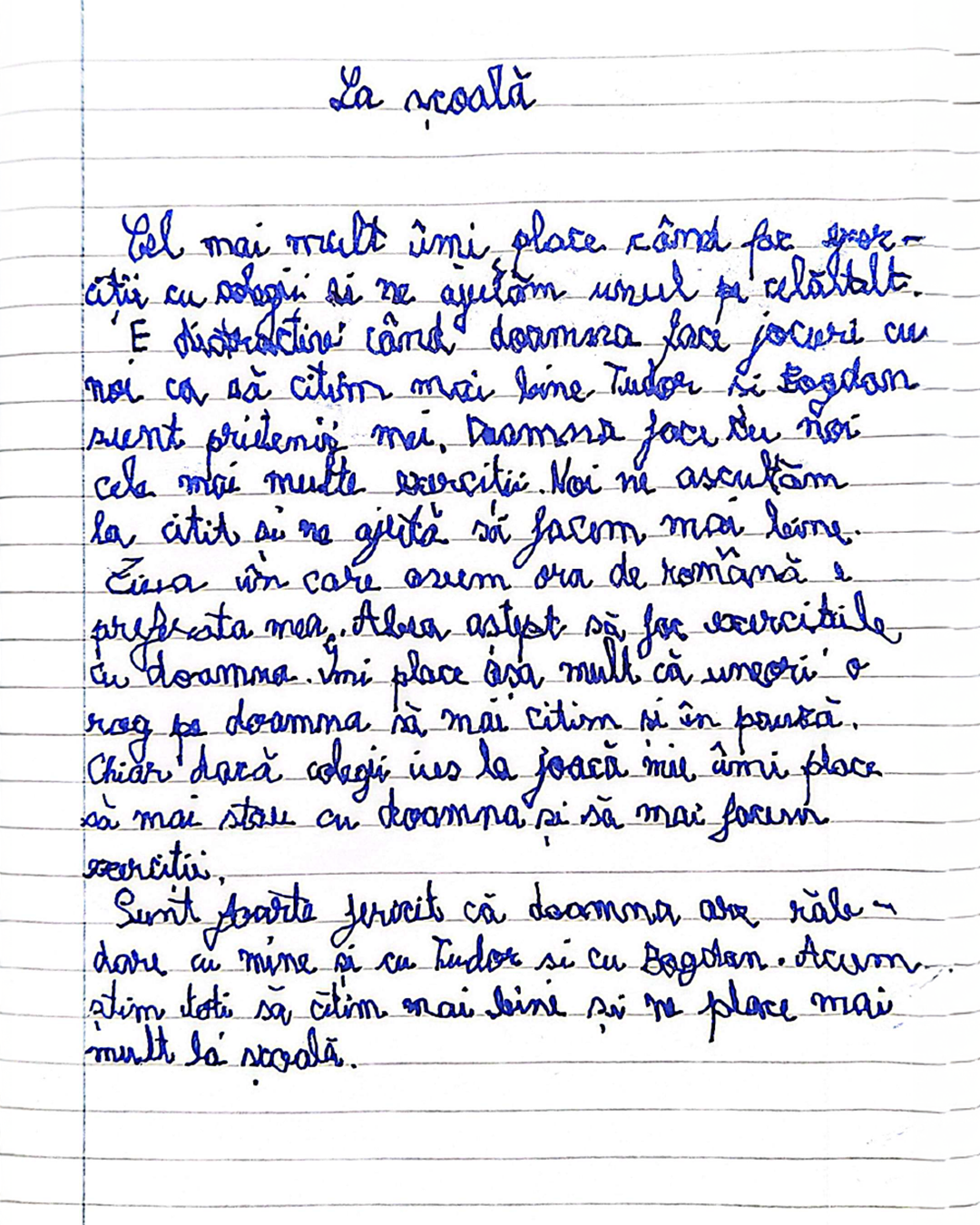 Citește compunerile din caietele celor mici și descoperă cum se simte experiența de a învăța să citească și să scrie, atunci când au parte de răbdare și lecții suplimentare, cu profesori care cred în ei.